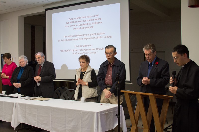 (L. to R.) Mrs. Claire Phillips, Mrs. Lynn Reid, Mr. David Reid, Mrs. Margie Mackey, Mr. Frank Chow, Mr. Allan Garneau, Fr. David Franco